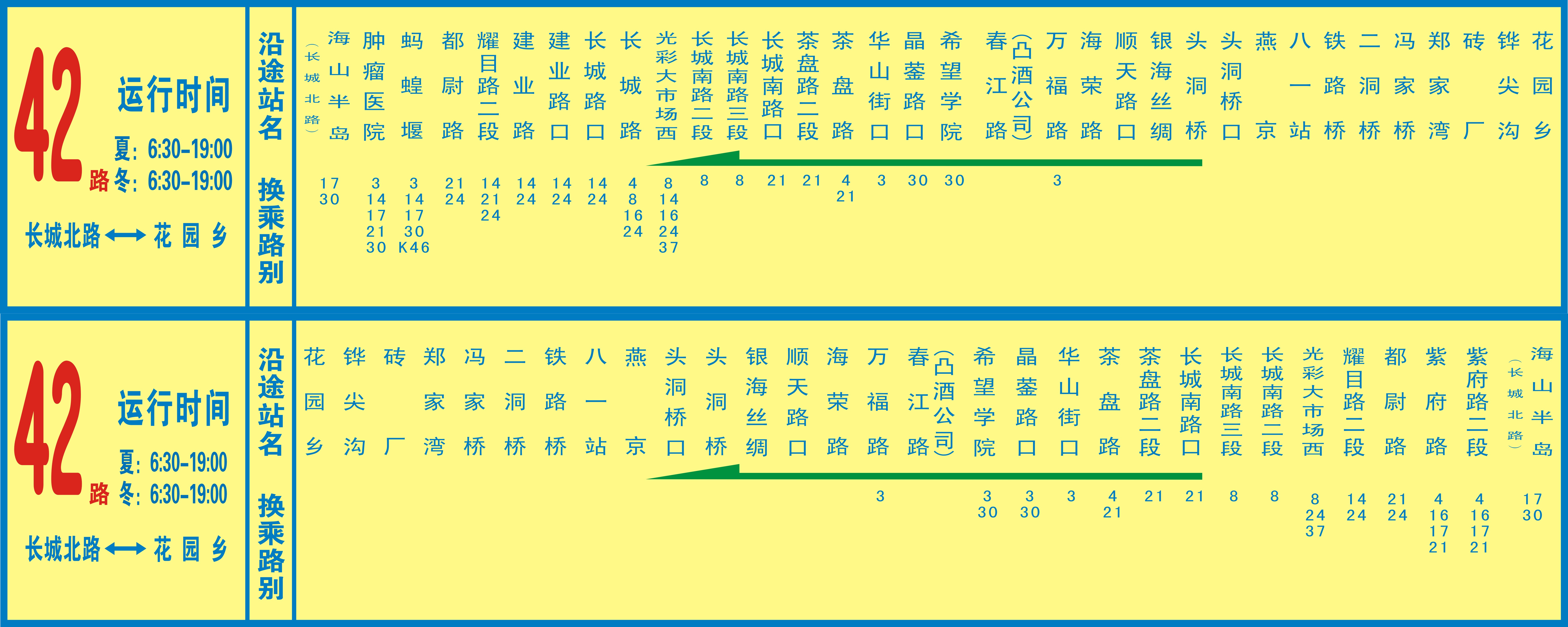 42路:長城北路(海山半島)-花園鄉(xiāng)
