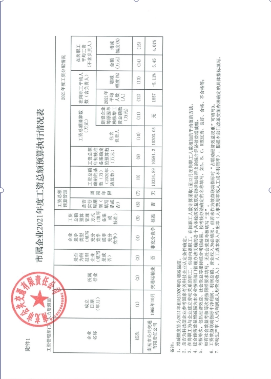 市屬企業(yè)2021年度工資總額預算執(zhí)行情況表