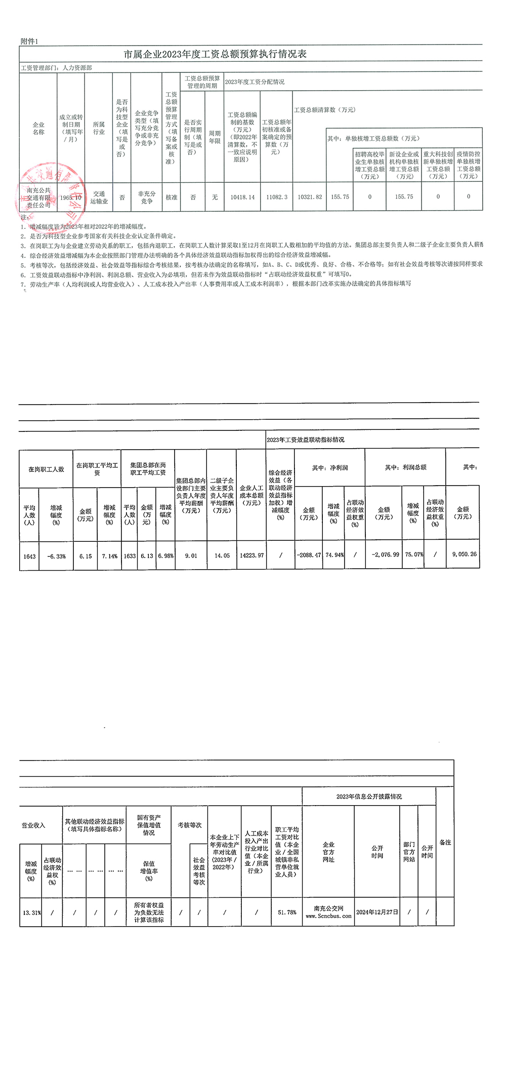 市屬企業(yè)2023年度工資總額預算執(zhí)行情況表